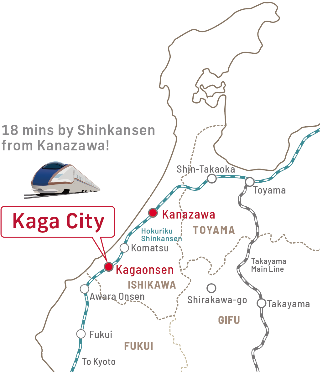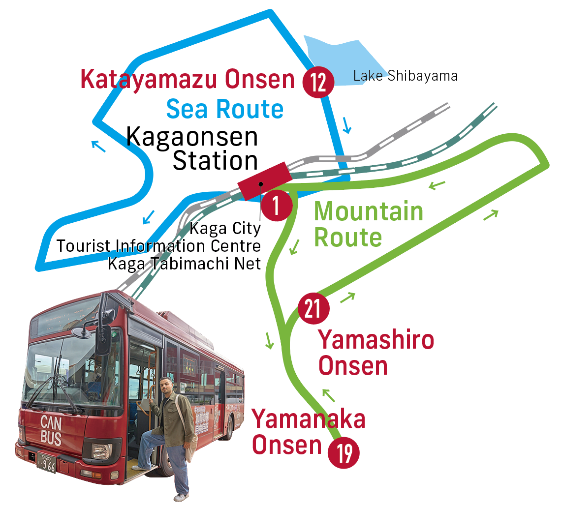 CANBUS Kaga Tour Bus You can discover Kaga with CANBUS. Starting from Kagaonsen Station, it makes a circuit of the sightseeing spots around the three onsen towns. Official Site