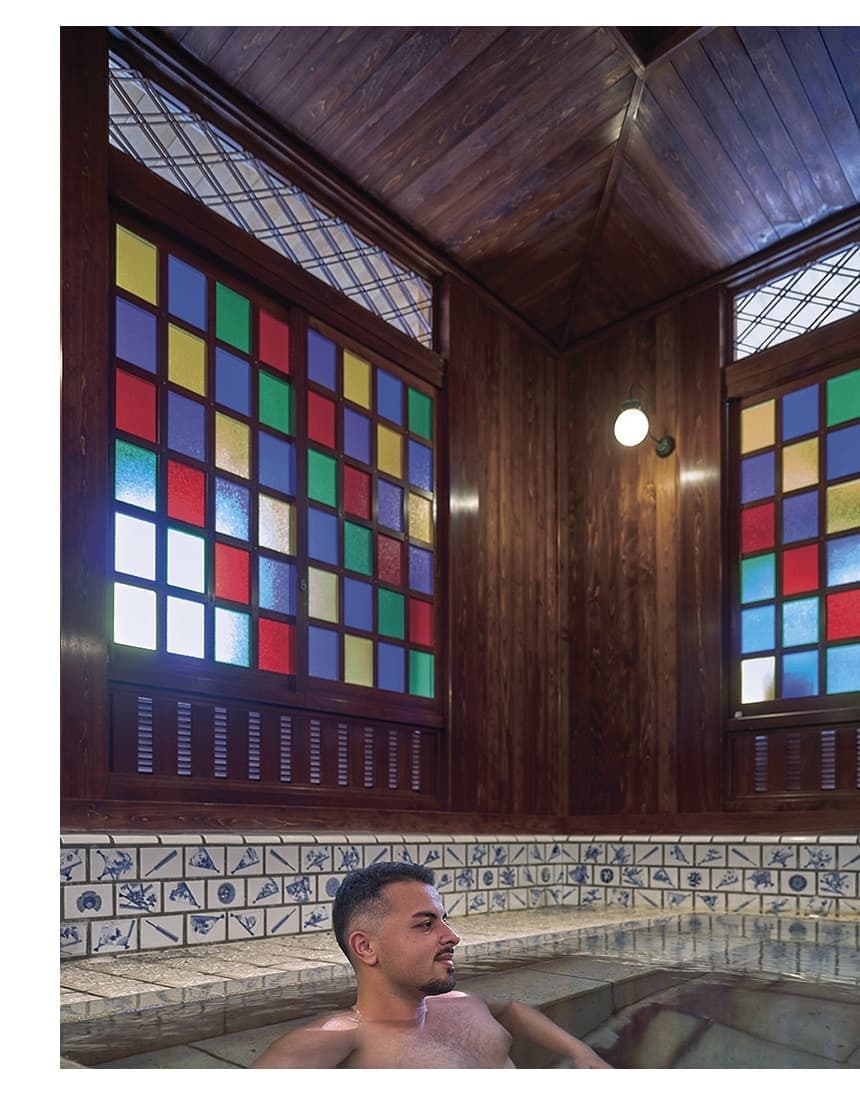 Yamashiro Onsen 21 Japan’s connection to onsens goes back thousands of years. Emperors and monks believed hot spring water was sacred and medicinal. In fact, Yamashiro Onsen—like many others—is still believed to have healing properties. The Ko-soyu is a time capsule from the Meiji period (1868-1912), faithfully rebuilt based on the original 1886 bathhouse. With colorful glass panels and Kutani-yaki porcelain tiles,