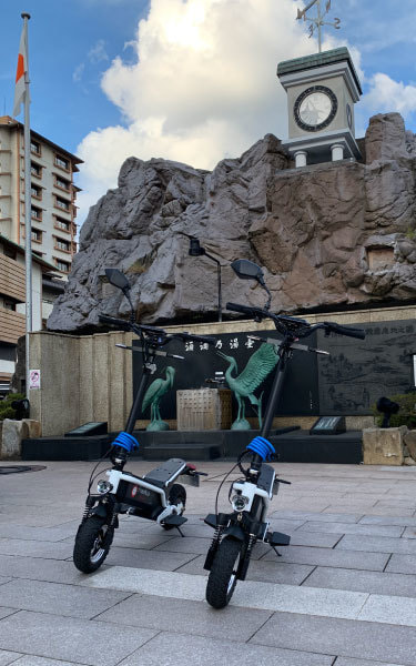 You can get around Wakura Onsen by using an eco-friendly, zero-emission vehicles such as a single-seater electric car or a motorized kick scooter (e-scooter). E-scooters are easy to maneuver in tight spaces and are ideal for exploring the town. Unlike motorcycles and bicycles, e-scooters offer a smooth ride.