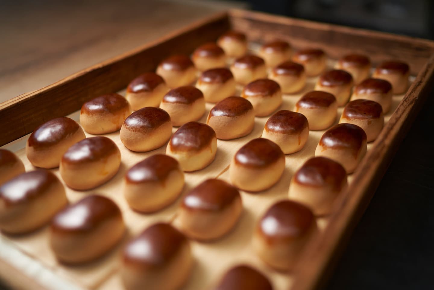 This is the shop’s signature product. Tiny diced chestnuts are mixed into a sweet bean paste, and the outer layer is toasted to a rich chestnut-brown hue. Its petite size means you can easily enjoy it using your fingers.