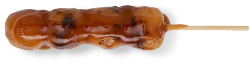 Sticky rice dumplings skewered on bamboo sticks and coated with a sweet soy sauce glaze. The dumplings are grilled after ordering, meaning it’s best to enjoy them while they’re still hot.