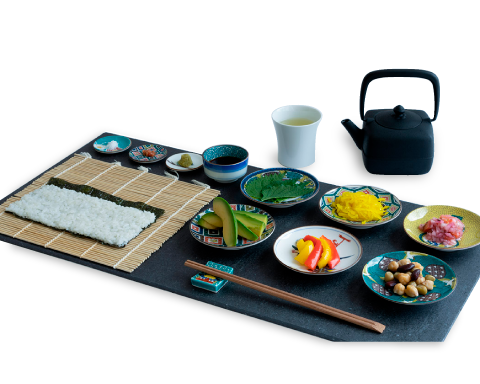 Get a unique experience of making your own sushi rolls. The vegan set consists of dishes selected from over 40 different ingredients, with no fish, eggs, or dairy products. It also includes a self-service tea ceremony with a variety of Japanese tea.
