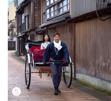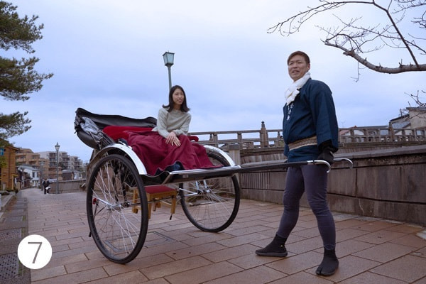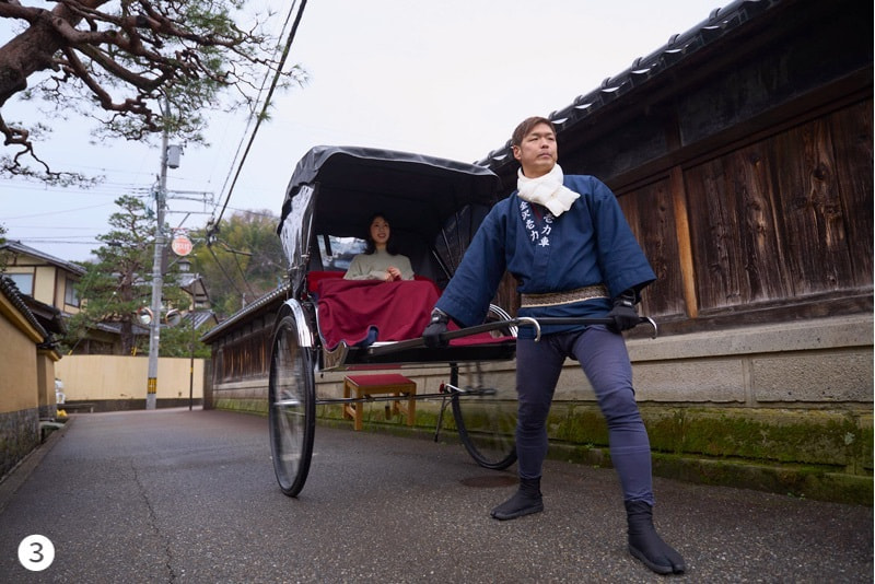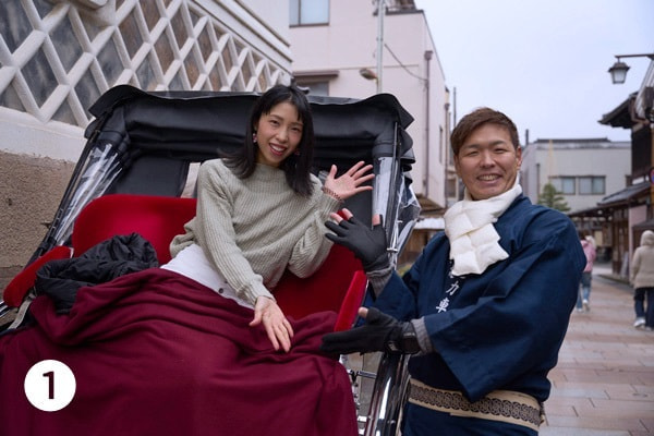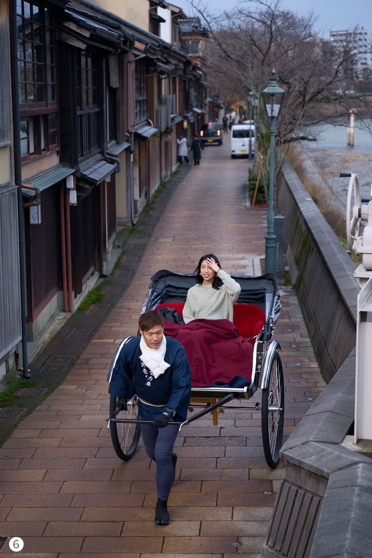 Priscilla Leung, a multitasking homemaker involved in English teaching, yoga coaching, and handcrafting, relishes the vibrant cultural scenes of Kanazawa while enjoying a ride on an exquisite Jinrikisha.
