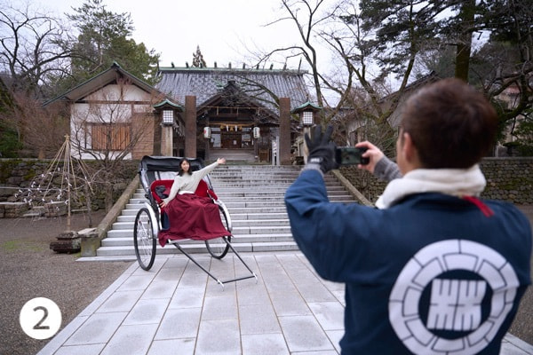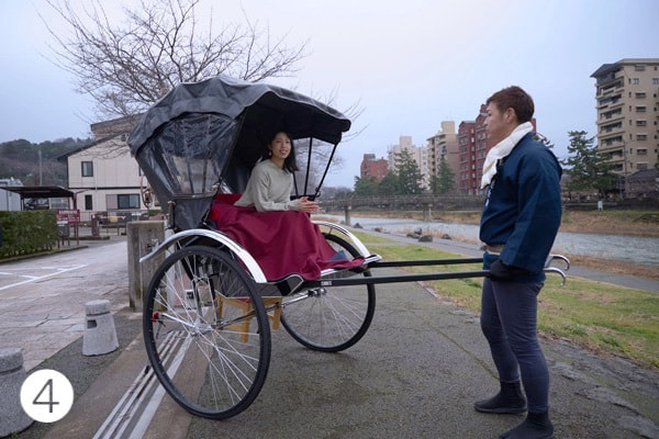 As the rickshaw glided through the narrow, picturesque streets lined with well-preserved historical teahouses, its sizable wheels reverberated with a distinctive click-clack sound, creating a seamless fusion of traditional townscape and this classic mode of transport. Wearing a kimono would undoubtedly transport you back to the past, making you a perfect fit for classic Japanese photos.