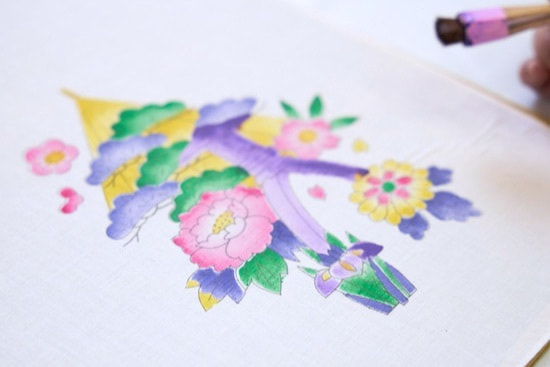 Thankfully, the women at the shop teaching me were very nice. The technique is to use the right amount of paint on the brush as you start from the outside of the pattern and work your way in. It may look easy, but I had a hard time controlling the amount of paint that goes on to the brush at first. It also requires some practice to make the outside a darker shade than the inside. As I went from one pattern to another, I felt more relaxed and found myself enjoying the process. I feel proud of myself for how the painting turned out.I recommend you try Kaga-Yuzen because it is really fun and relaxing and you will also feel proud of how your painting turns out.